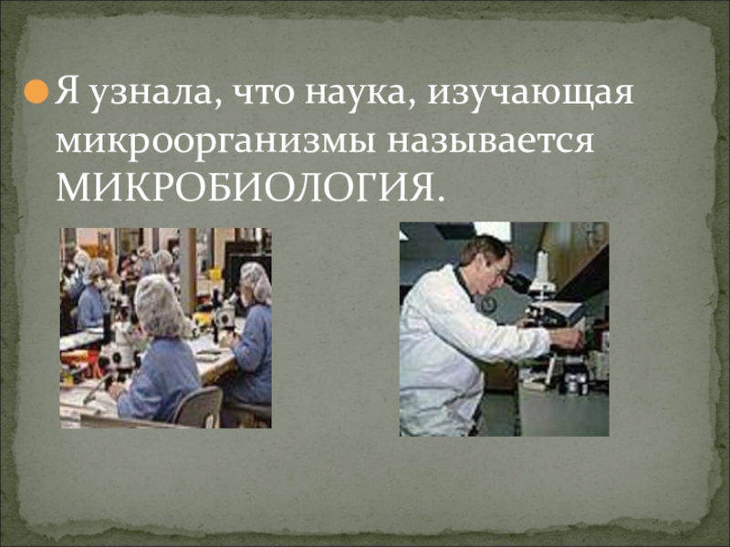 Слайд 6Я узнала, что наука, изучающая микроорганизмы называется МИКРОБИОЛОГИЯ.