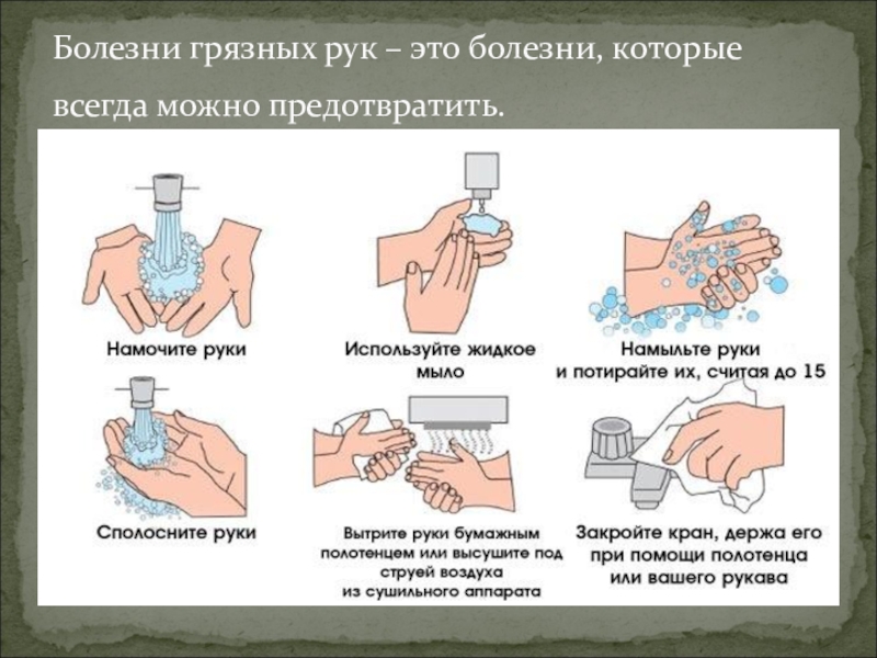 Слайд 24Болезни грязных рук – это болезни, которые всегда можно предотвратить.