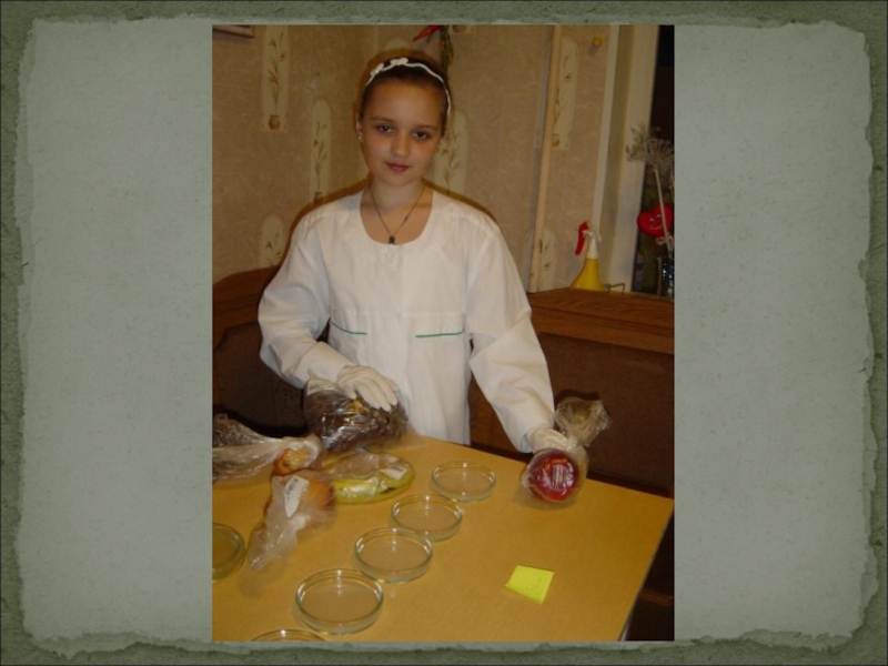 С фруктов производились смывы. Исследование проводили, используя стерильные предметы: перчатки, которые обрабатывали спиртом после работы с каждым фруктом, смывы производили ватной стерильной палочкой смоченной в дистиллированной воде.