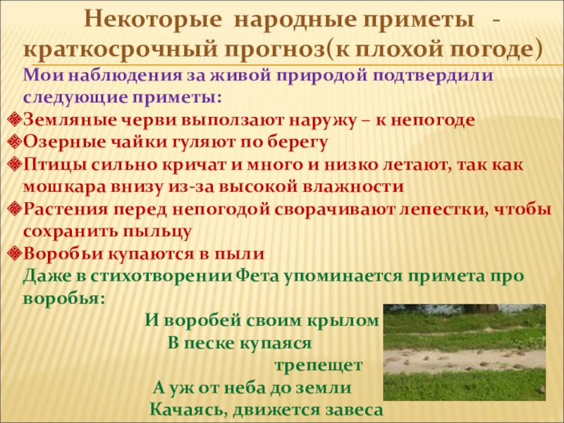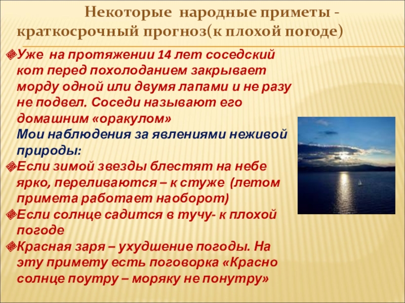 Некоторые народные приметы - краткосрочный прогноз(к плохой погоде)
