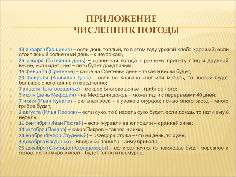 ПРИМЕТЫ ДОЛГОСРОЧНОГО ПРОГНОЗА ИЗ ЧИСЛЕННИКА ПОГОДЫ