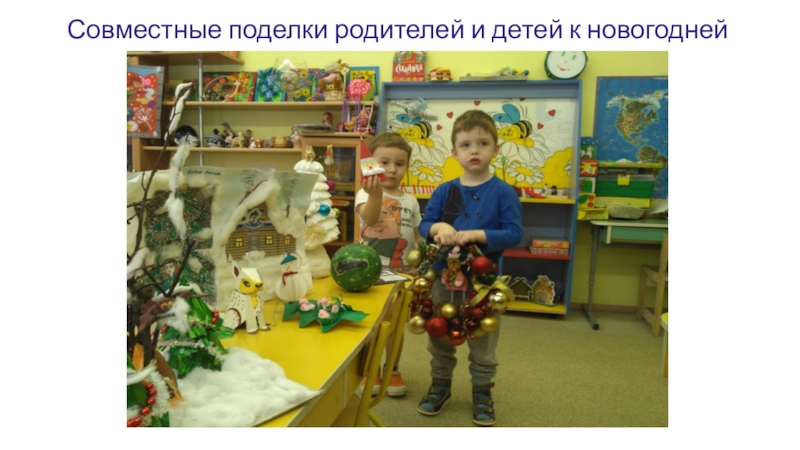 Слайд 12Совместные поделки родителей и детей к новогодней выставке