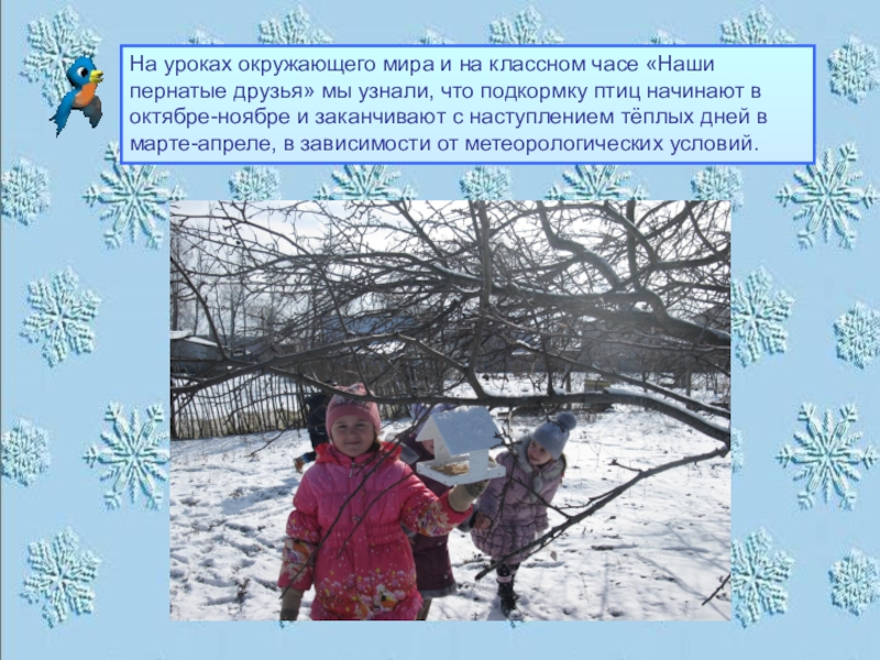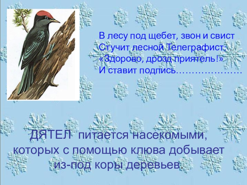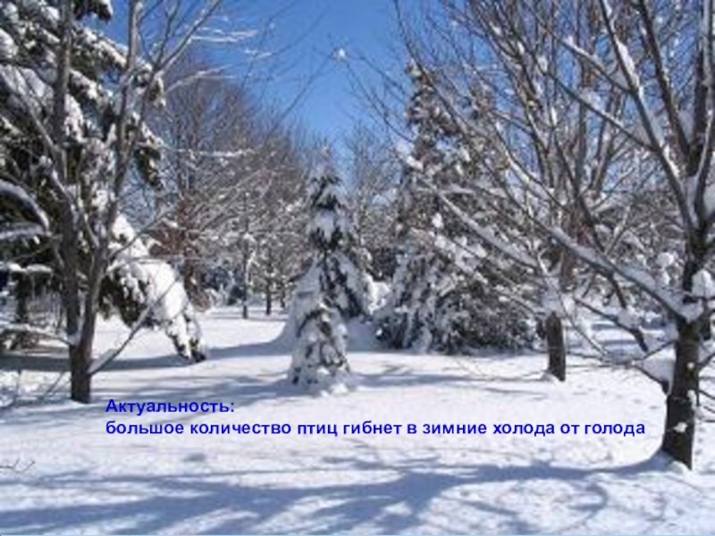 Слайд 14Зима в средней полосе Росси для птиц бывает разная.. Холод им