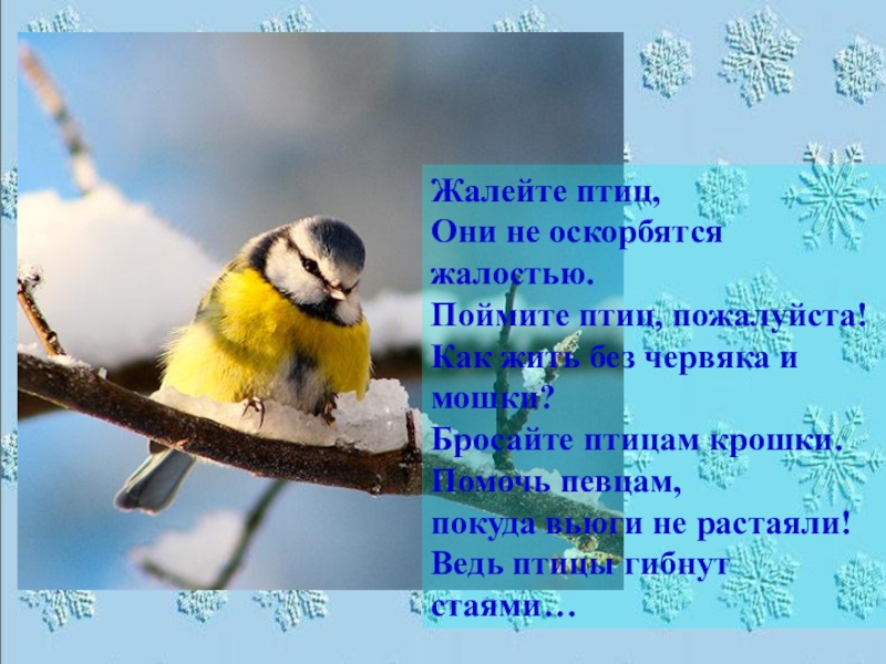 Слайд 5Жалейте птиц,