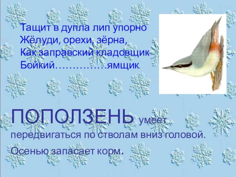Слайд 8Тащит в дупла лип упорно