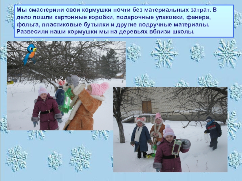 Слайд 17Мы смастерили свои кормушки почти без материальных затрат. В дело пошли