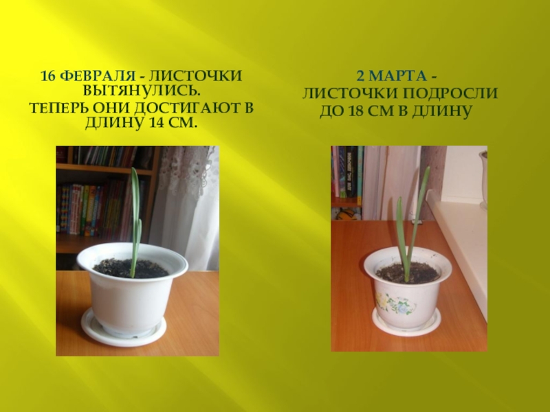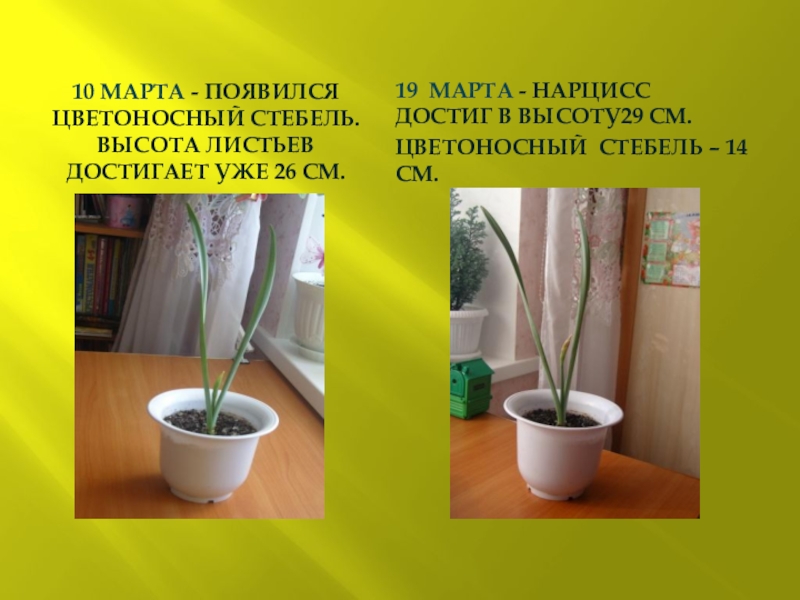 Слайд 1710 марта - Появился цветоносный стебель. Высота листьев достигает уже 26