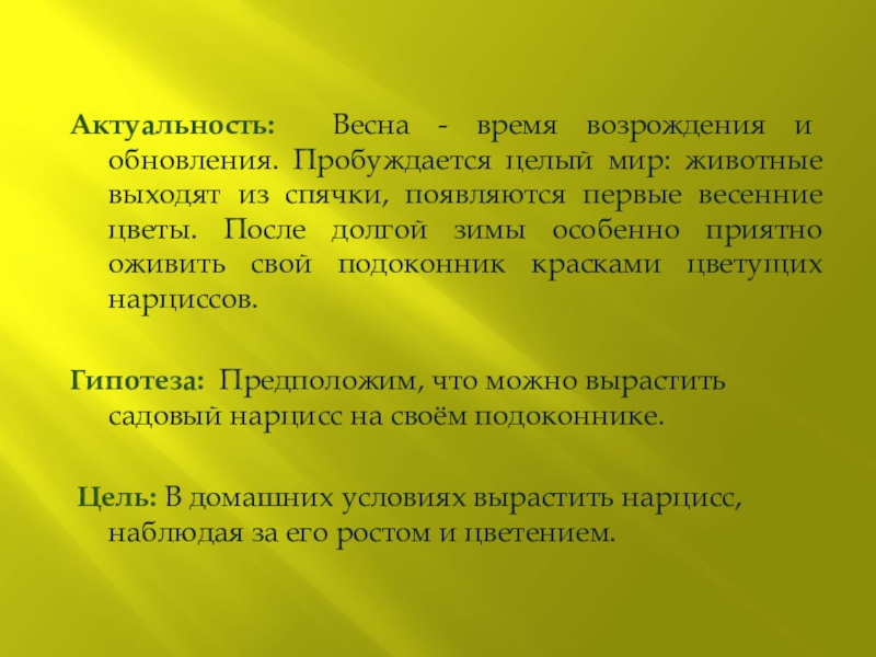 Цель: В домашних условиях вырастить нарцисс, наблюдая за его ростом и цветением.