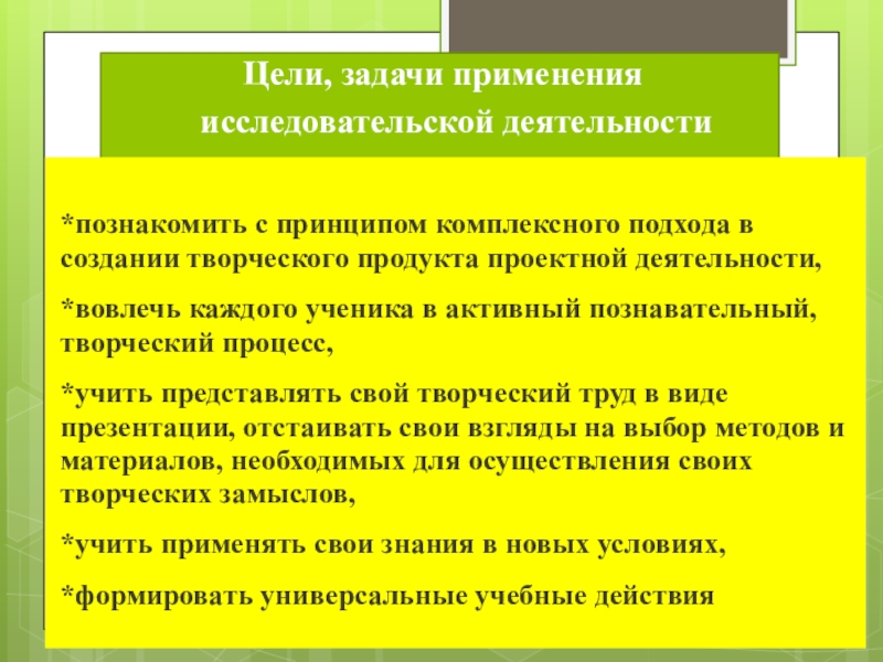 Слайд 5Цели, задачи применения исследовательской деятельности