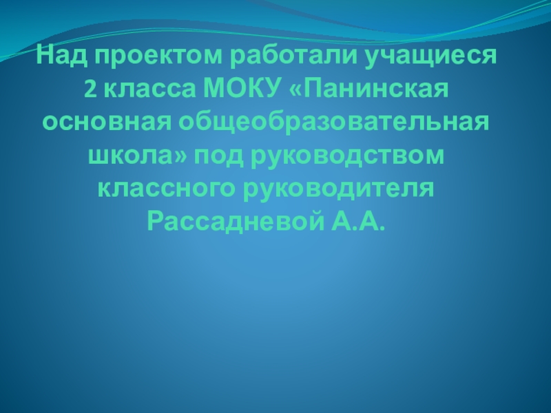 Слайд 19Над проектом работали учащиеся 2 класса МОКУ «Панинская основная общеобразовательная школа»