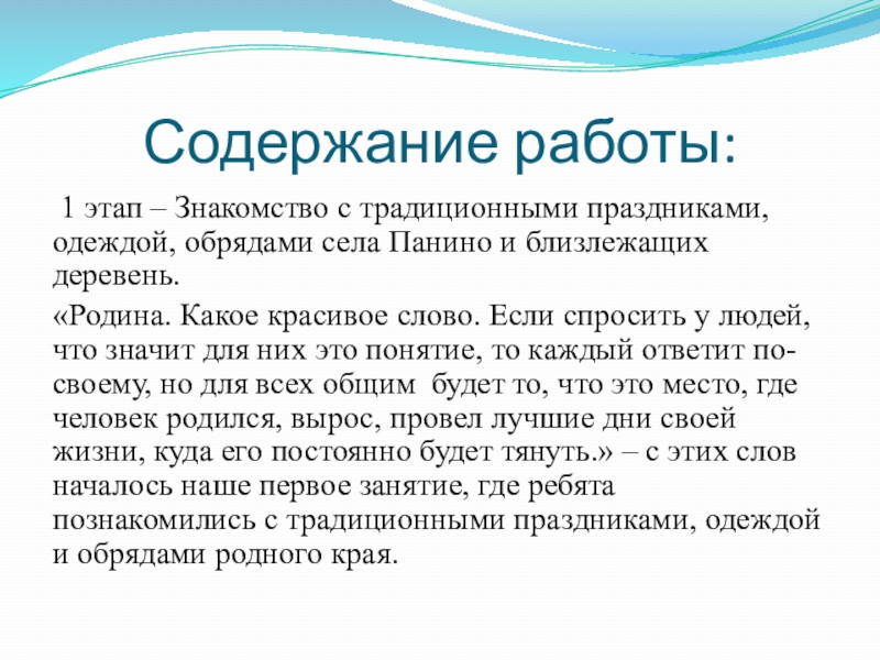 1 этап – Знакомство с традиционными праздниками, одеждой, обрядами села