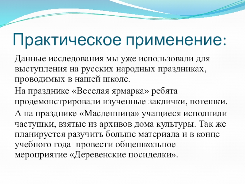 В ходе исследовательской работы учащиеся узнали много нового из фольклора
