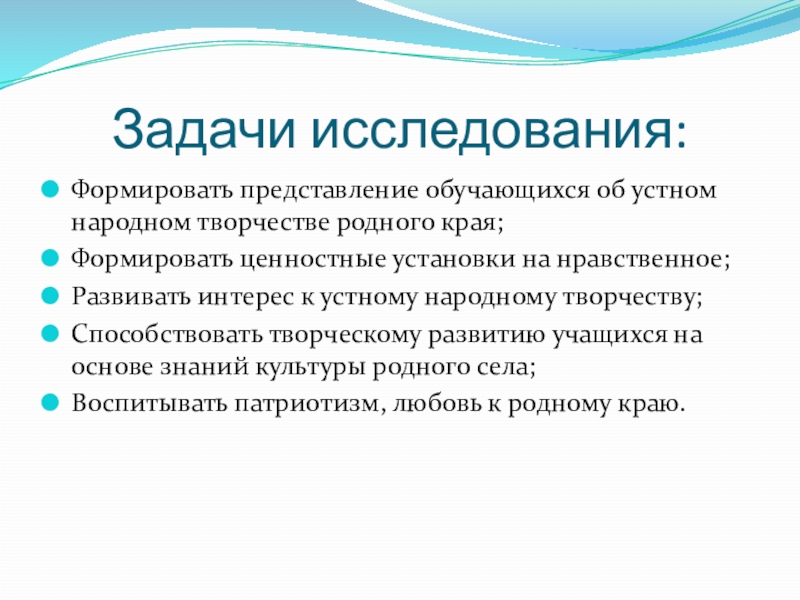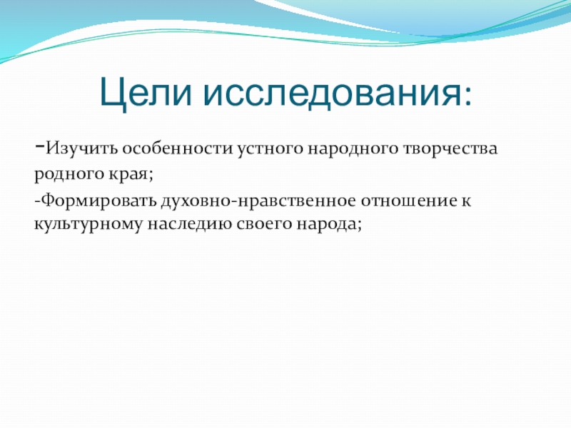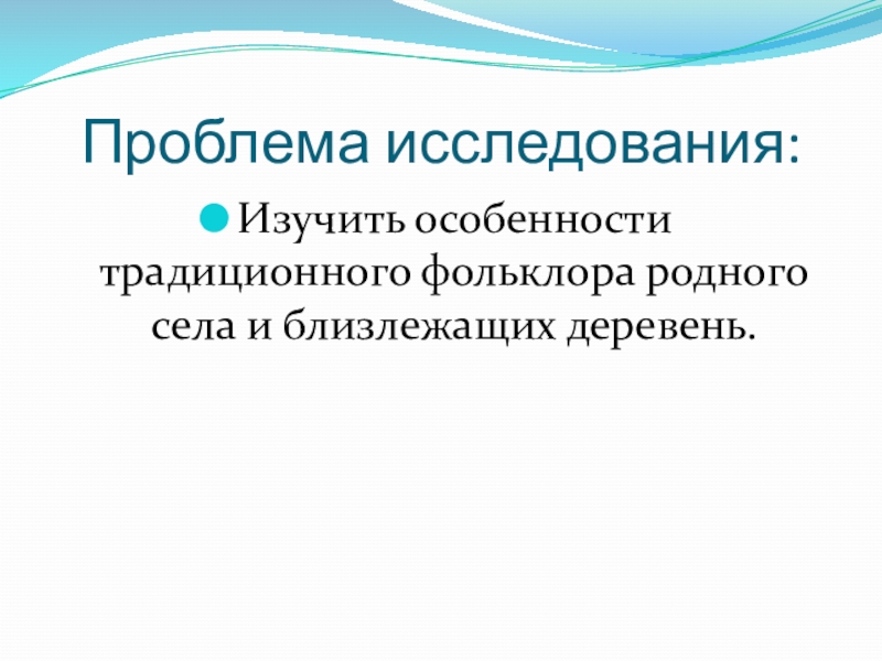 Изучить особенности традиционного фольклора родного села и близлежащих деревень.