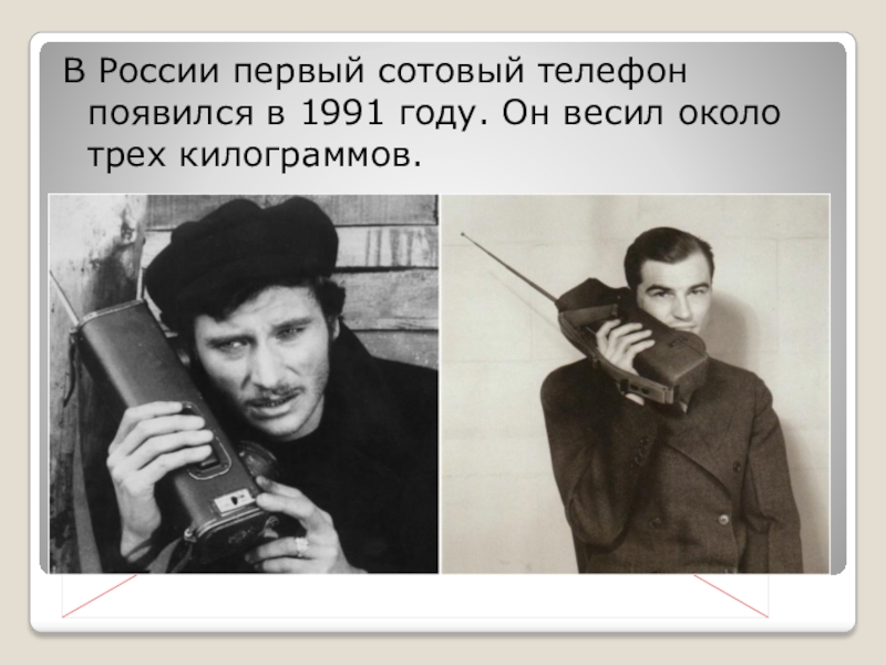 Слайд 6В России первый сотовый телефон появился в 1991 году. Он весил
