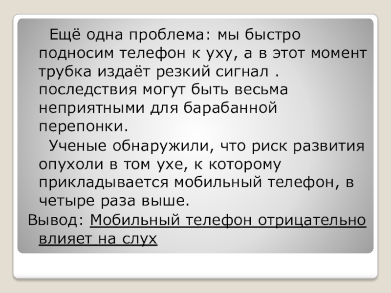 Вывод: Мобильный телефон отрицательно влияет на слух