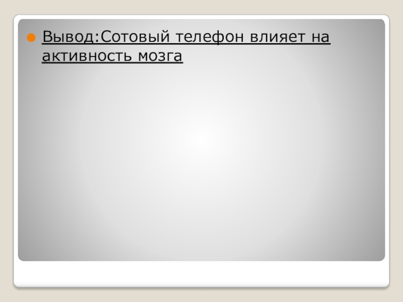 Слайд 10Вывод:Сотовый телефон влияет на активность мозга