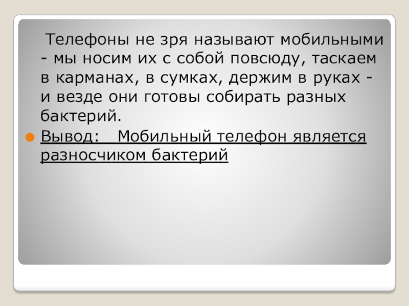 с собой повсюду, таскаем в карманах, в сумках, держим в руках - и везде они готовы собирать разных бактерий.