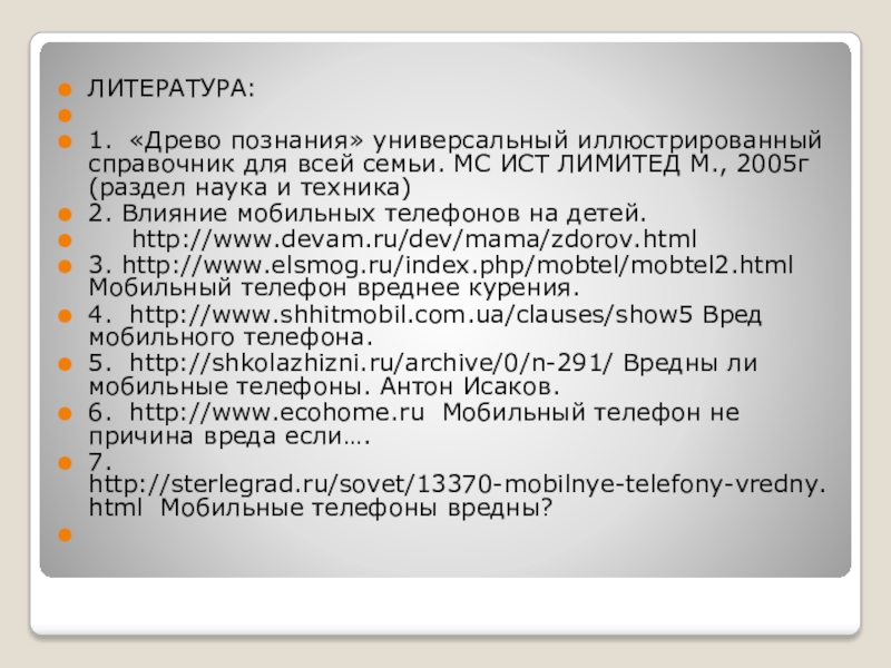 7. http://sterlegrad.ru/sovet/13370-mobilnye-telefony-vredny.html Мобильные телефоны вредны?