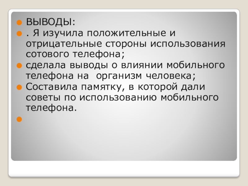 . Я изучила положительные и отрицательные стороны использования сотового телефона;