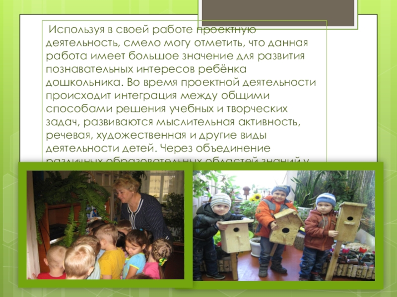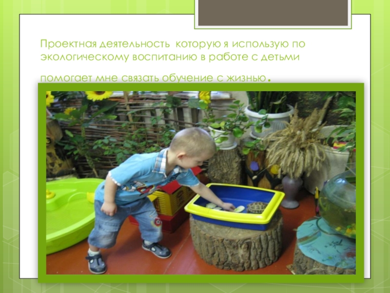 Проектная деятельность которую я использую по экологическому воспитанию в работе с детьми помогает мне связать обучение с жизнью.