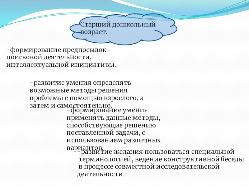 Требует от педагога внутреннего напряжения: с одной стороны, он должен поддерживать активность детей, побуждать их к разговору, а с другой, ограничивать свое стремление предлагать дошкольникам собственные варианты решения задачи.