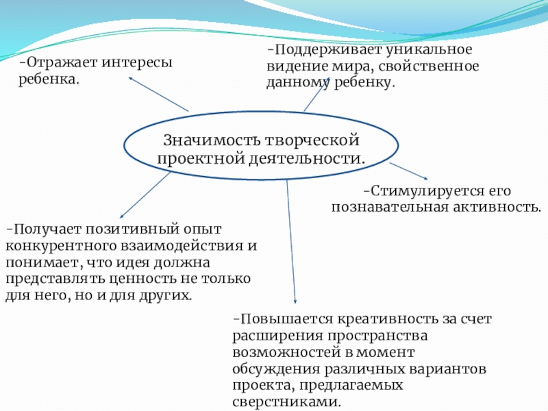 -Повышается креативность за счет расширения пространства возможностей в момент обсуждения различных вариантов проекта, предлагаемых сверстниками.
