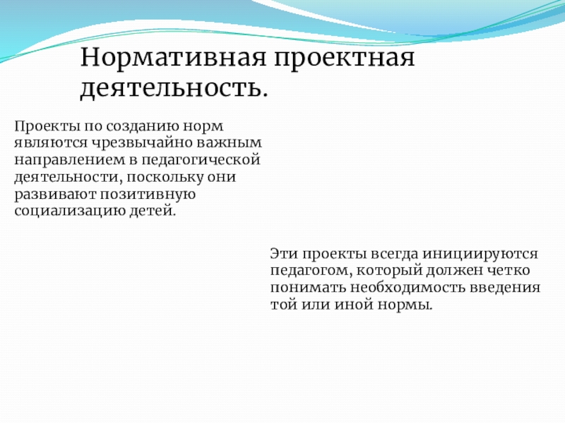 Эти проекты всегда инициируются педагогом, который должен четко понимать необходимость введения той или иной нормы.