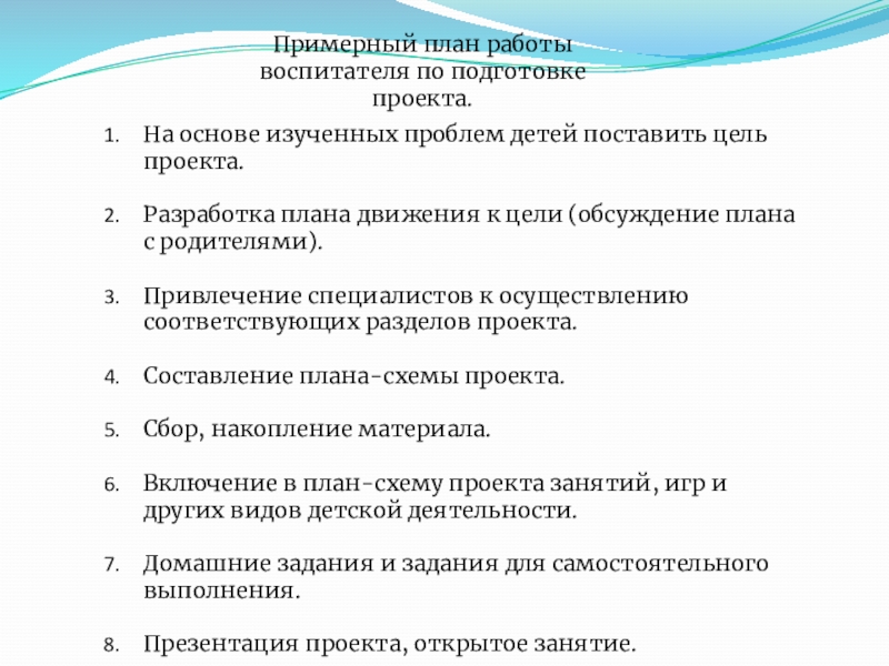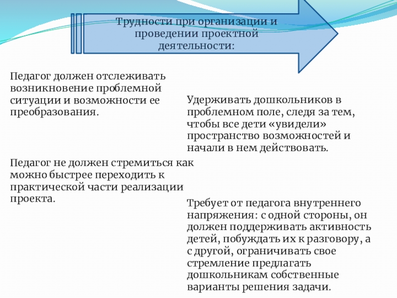 Педагог не должен стремиться как можно быстрее переходить к практической части реализации проекта.