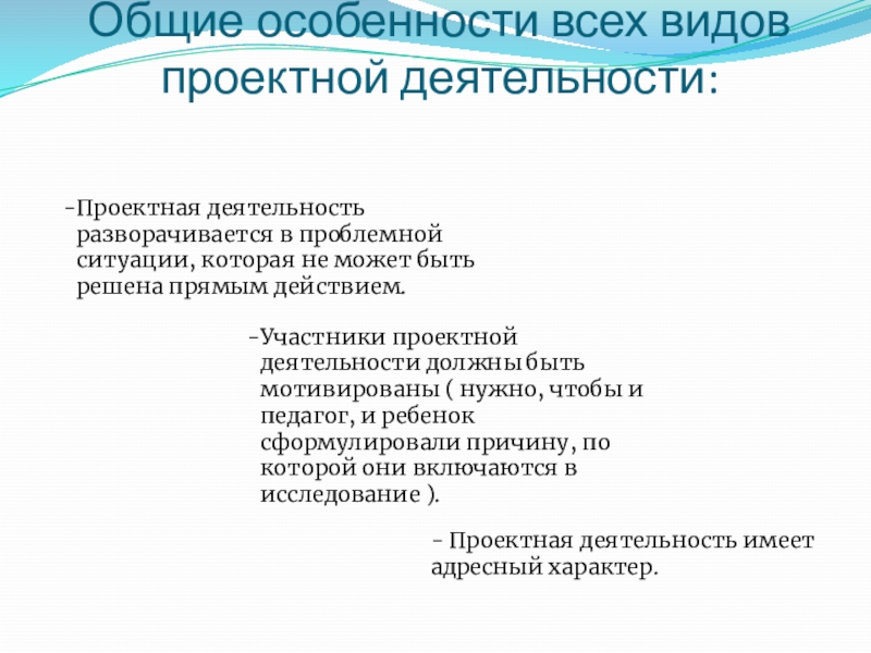 - Проектная деятельность имеет адресный характер.