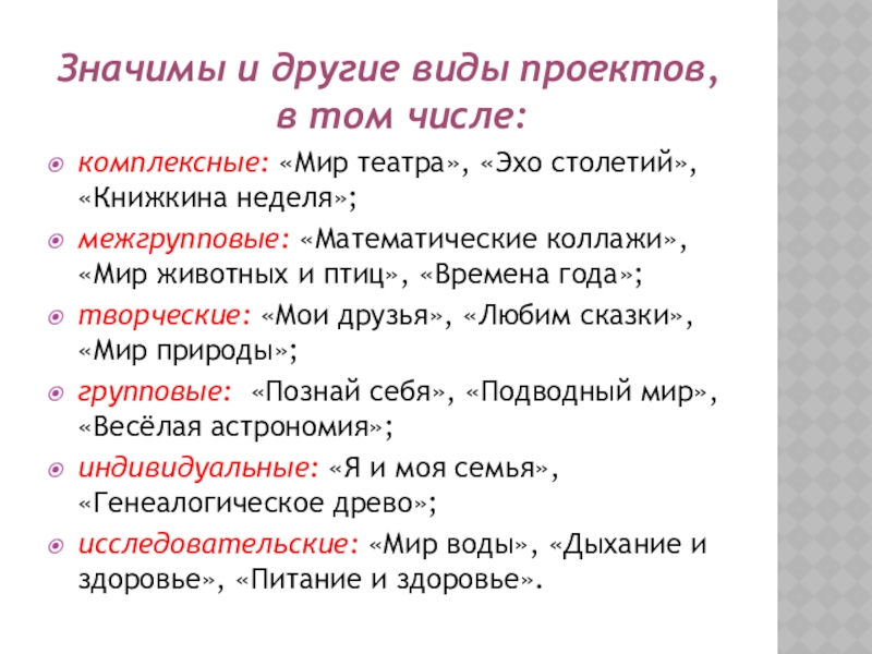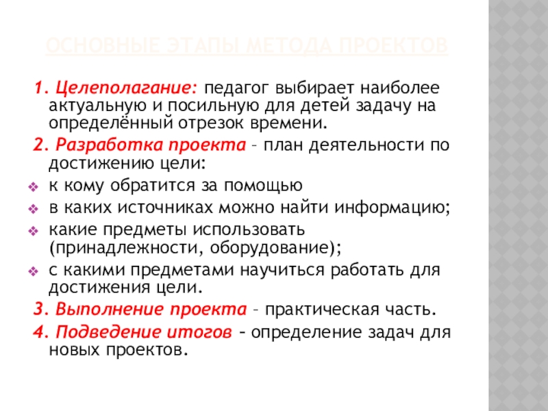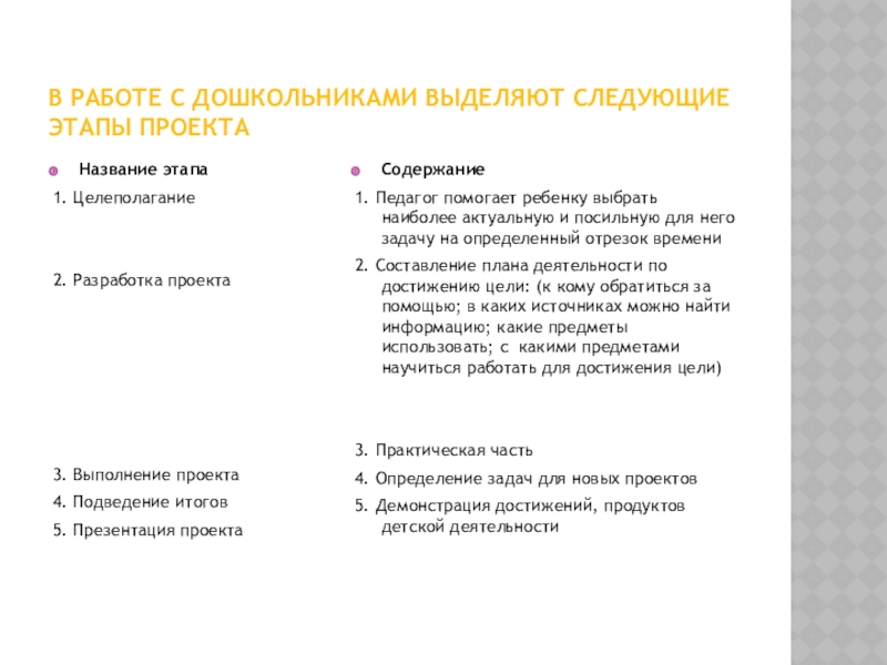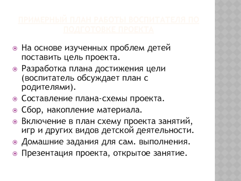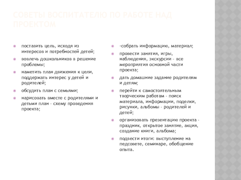 провести занятия, игры, наблюдения, экскурсии – все мероприятия основной части проекта;
