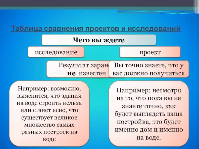 Например: можно начать с маленького школьного опыта, а потом основать целый научно-исследовательский институт по изучению построек на воде