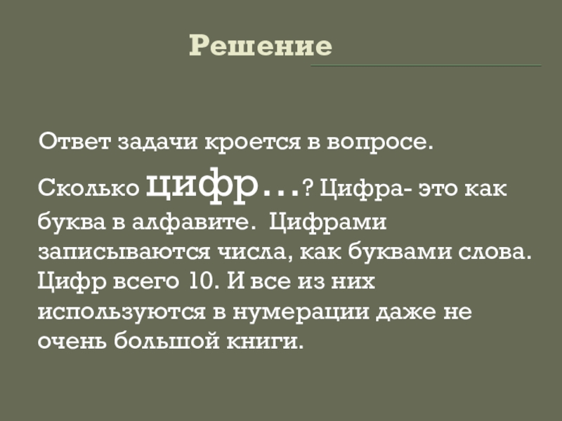 Ответ задачи кроется в вопросе. Сколько цифр…? Цифра- это