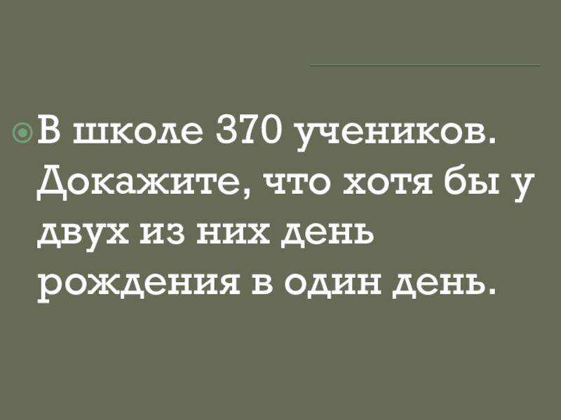 Слайд 12В школе 370 учеников. Докажите, что хотя бы у двух из