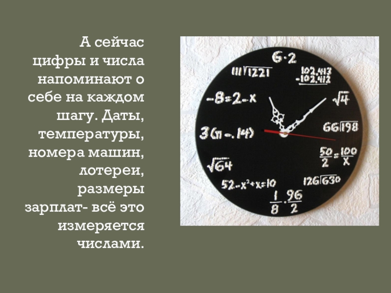 Слайд 3А сейчас цифры и числа напоминают о себе на каждом шагу.