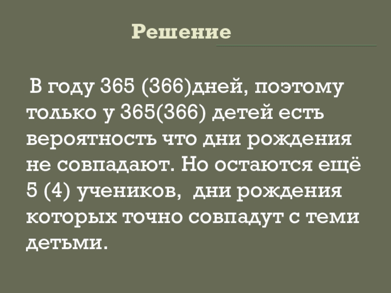 есть вероятность что дни рождения не совпадают. Но остаются ещё 5 (4) учеников, дни рождения которых точно совпадут с теми детьми.