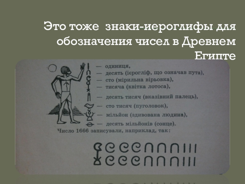 Слайд 6Это тоже знаки-иероглифы для обозначения чисел в Древнем Египте