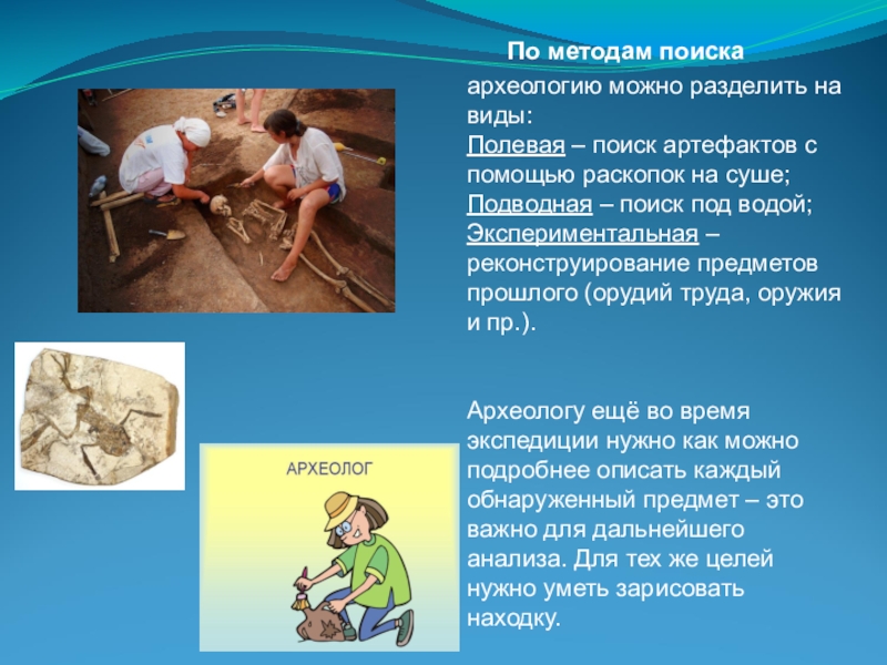 Археологу ещё во время экспедиции нужно как можно подробнее описать каждый обнаруженный предмет – это важно для дальнейшего анализа. Для тех же целей нужно уметь зарисовать находку.