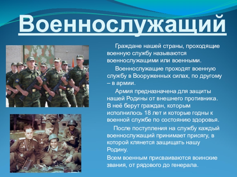 Граждане нашей страны, проходящие военную службу называются военнослужащими