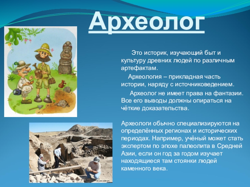 Археолог не имеет права на фантазии. Все его выводы должны опираться на чёткие доказательства.