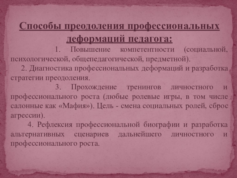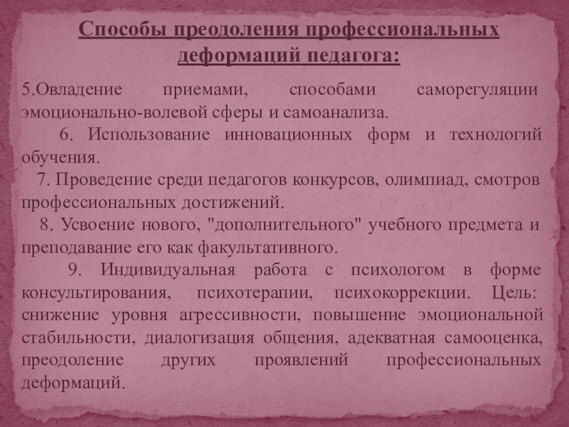 Способы преодоления профессиональных деформаций педагога: