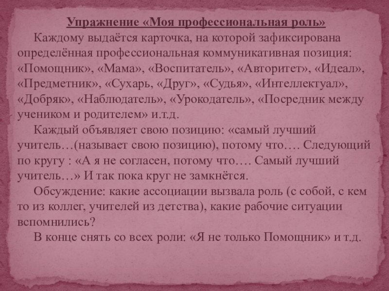 Упражнение «Моя профессиональная роль»