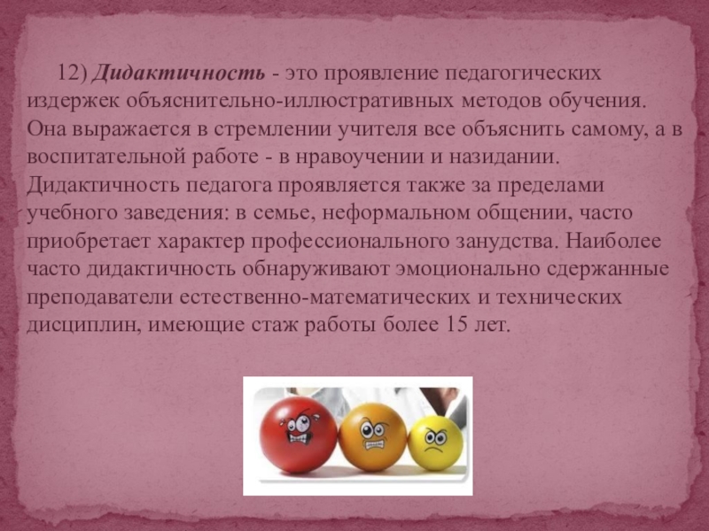 Слайд 12 10) Педагогический догматизм возникает вследствие частого повтора одних и тех же