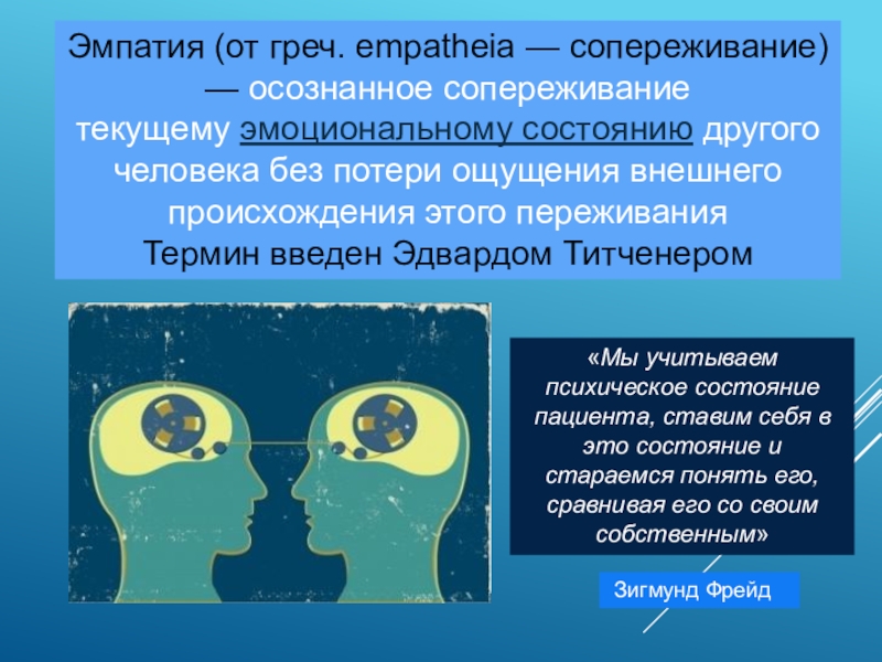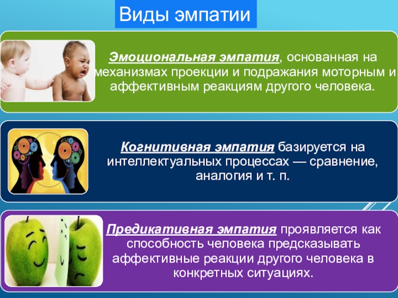 сопереживание — человек испытывает такие же эмоции, как у партнёра по общению;