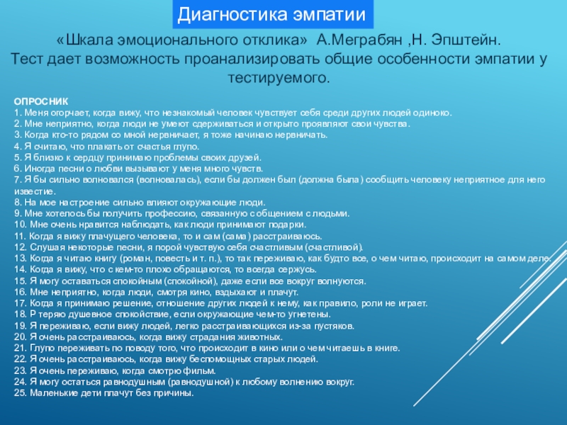 11. Когда я вижу плачущего человека, то и сам (сама) расстраиваюсь.