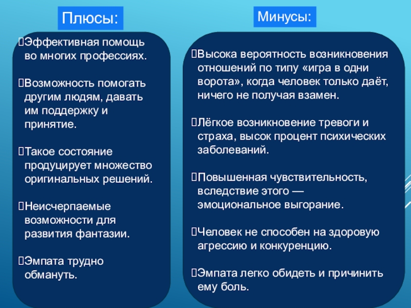 Повышенная чувствительность, вследствие этого — эмоциональное выгорание.