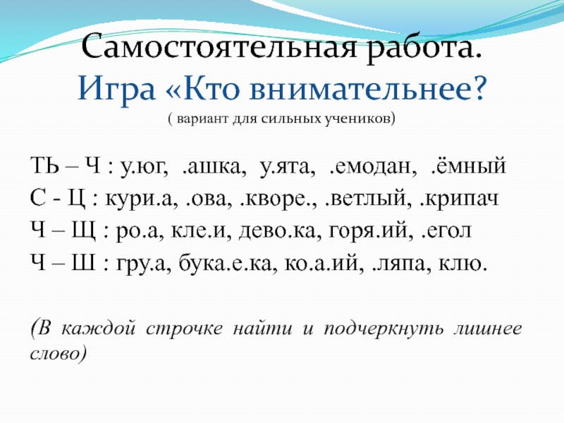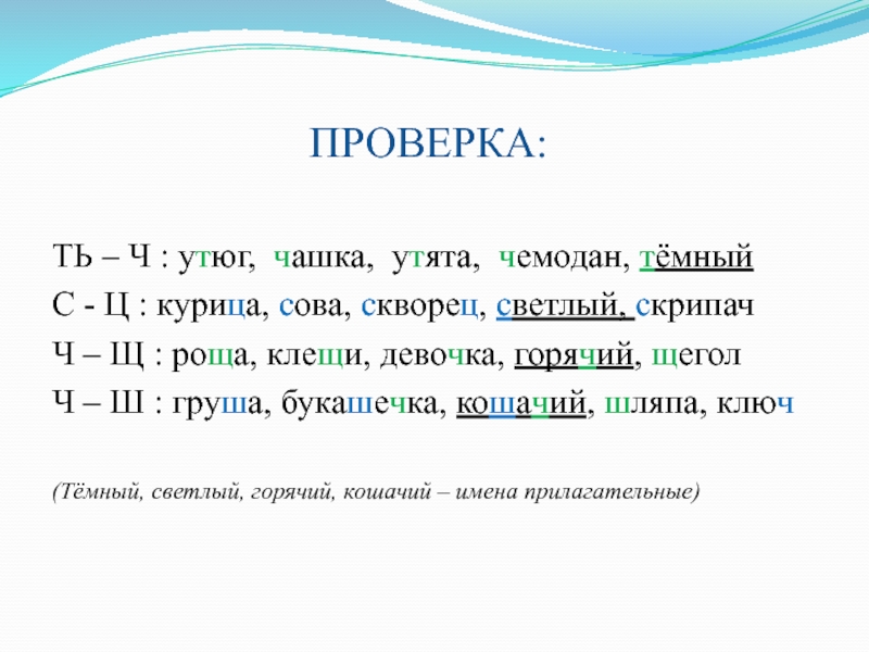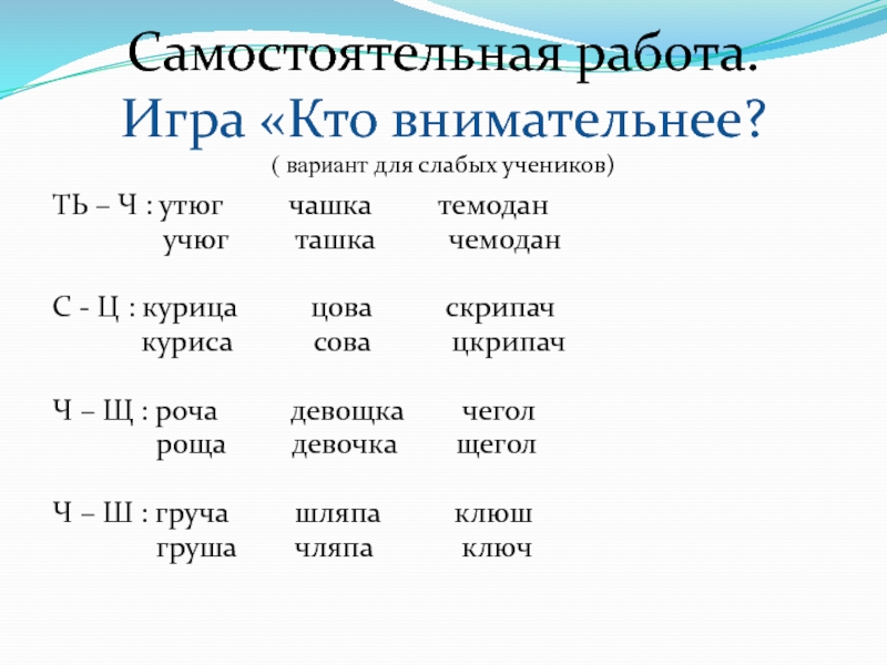 Ч – Щ : ро.а, кле.и, дево.ка, горя.ий, .егол