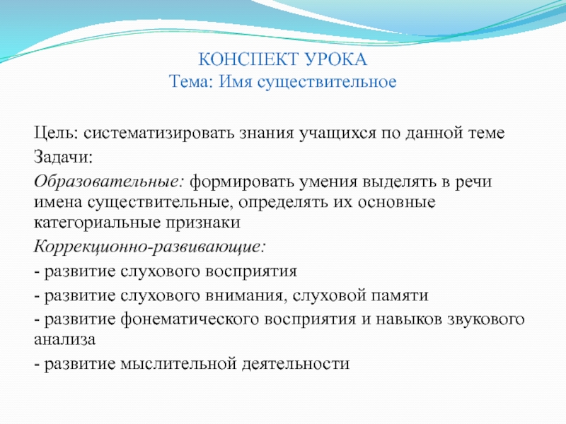 умения выделять в речи имена существительные, определять их основные категориальные признаки