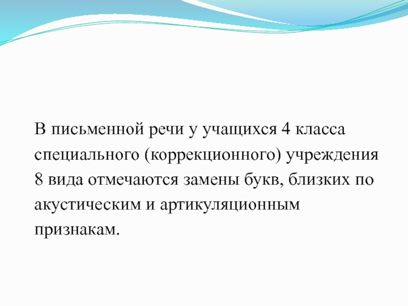 В письменной речи у учащихся 4 класса специального (коррекционного) учреждения 8