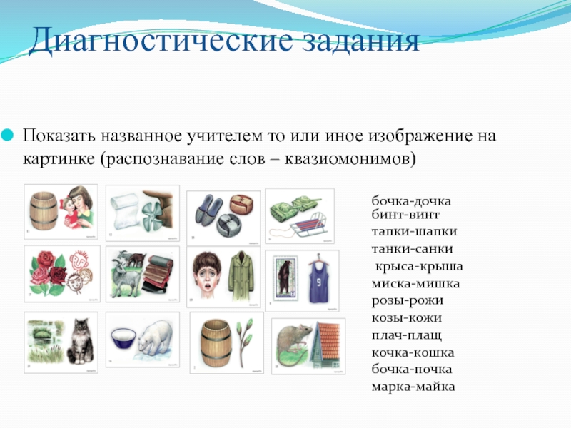 Показать названное учителем то или иное изображение на картинке (распознавание