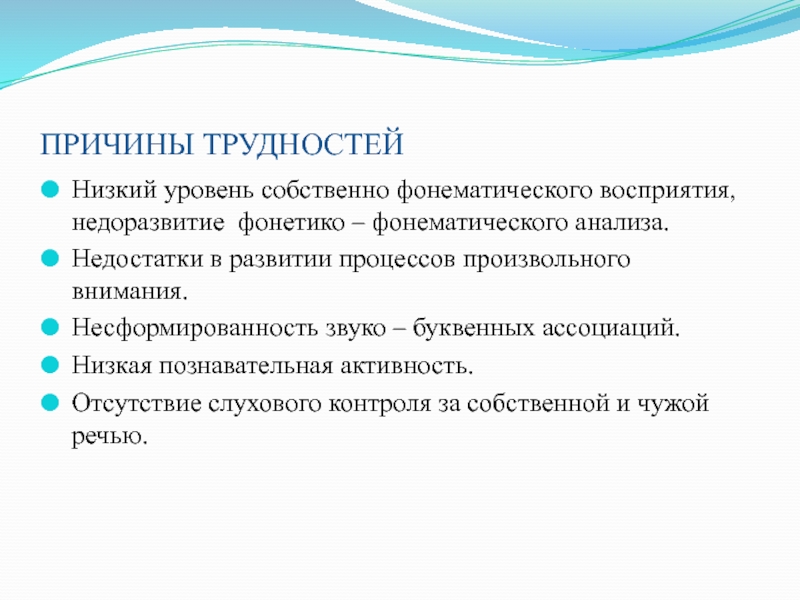 Слайд 3ПРИЧИНЫ ТРУДНОСТЕЙ